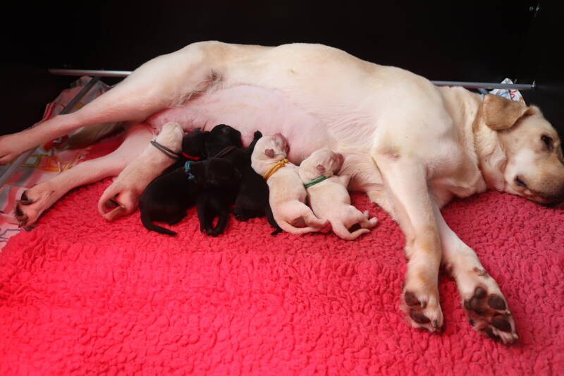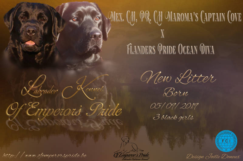 Vandaag zijn Of Emperor's Pride One Of A Kind en Flanders Pride Snowball de trotse ouders geworden van 1 zwarte reu, 1 zwarte teef en 3 gele teven.